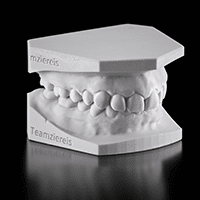 Wir planen und produzieren Ihre Clear Aligner. Der Versand aller Aligner (einzeln verpackt und nummeriert) erfolgt inkl. OK- und UK-Modell des Endergebnisses, Schienenbox, Remover und Feile.
